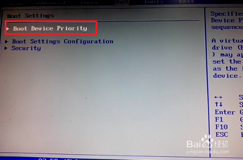 选择BOOT之后选择第一项“Boot Device Priority”按回车键进入下一个选择界面。