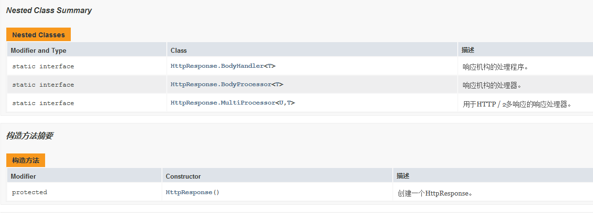 表示HttpRequest的响应。 通常在响应正文,响应状态代码和headers被接收之后,HttpResponse才是可用的。 这取决于发送请求时提供的响应体处理程序。 在所有情况下,在Body被读取之前调用response body handler程序。 此类中提供了访问响应头和响应主体的方法。