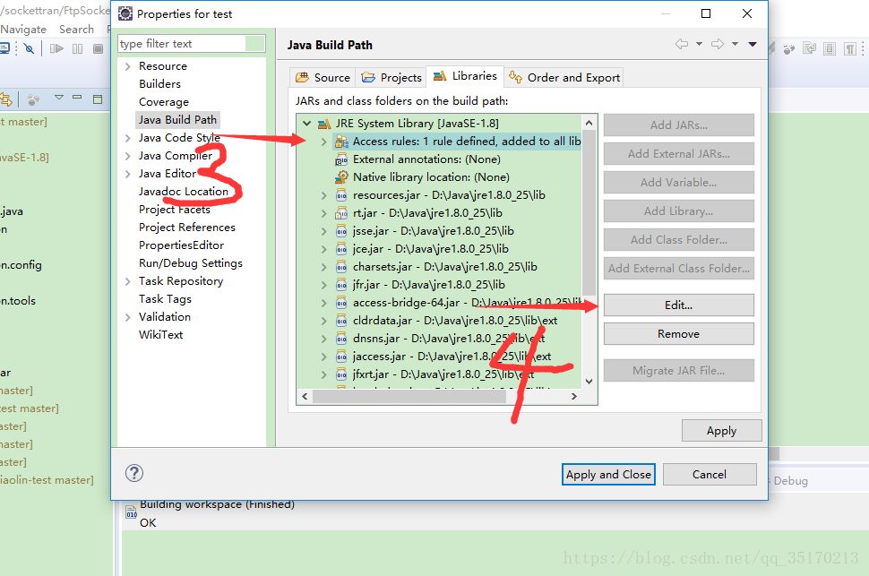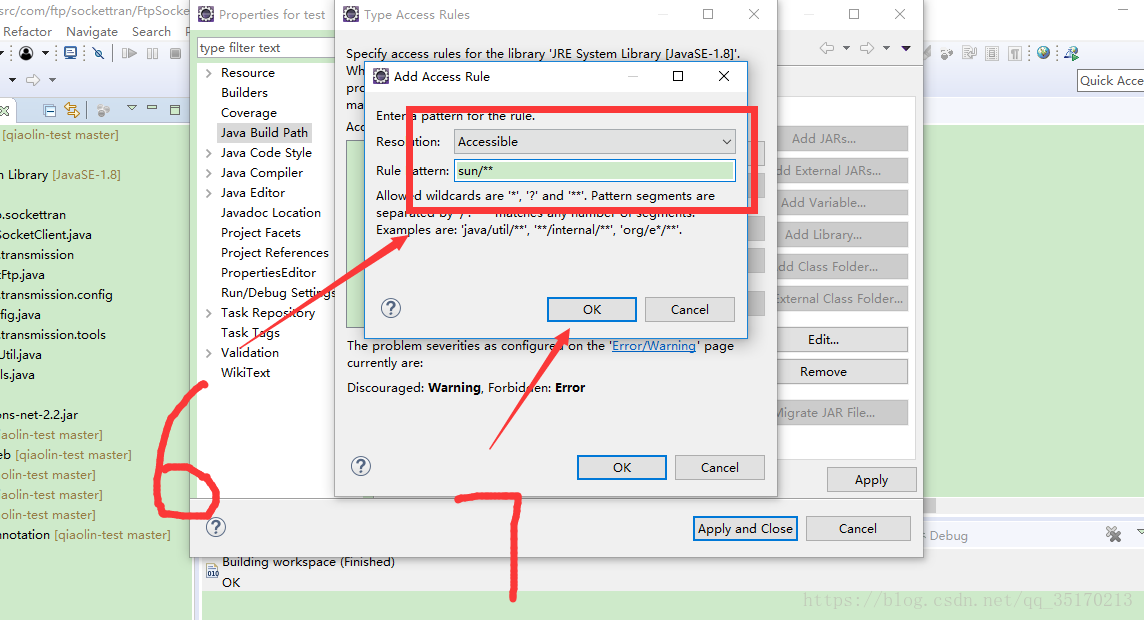Access restriction: The type FtpClient is not accessible due to restriction on required library F:Program FilesJavajre6librt.jar