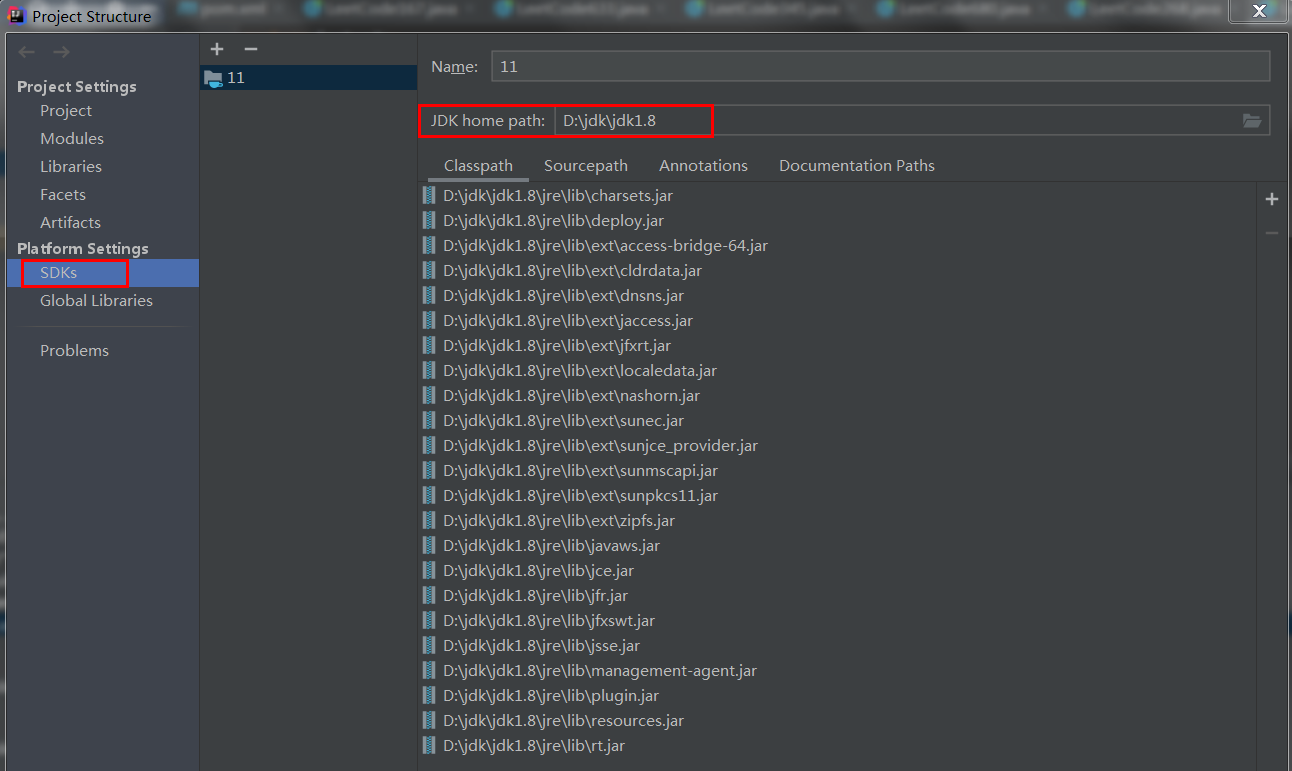 打开File---> Project Structure---->Platform Settings--->SDKs修改JDK home path为本地jdk安装目录: