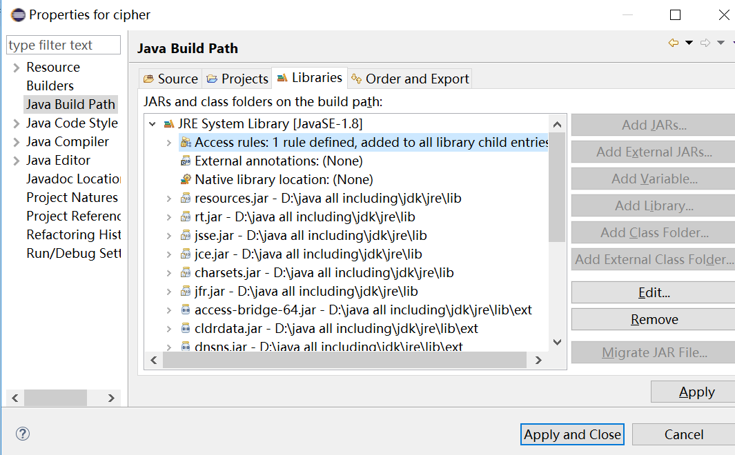 (2)双击 java Build Path->JRE SystemLibrary->Access rules