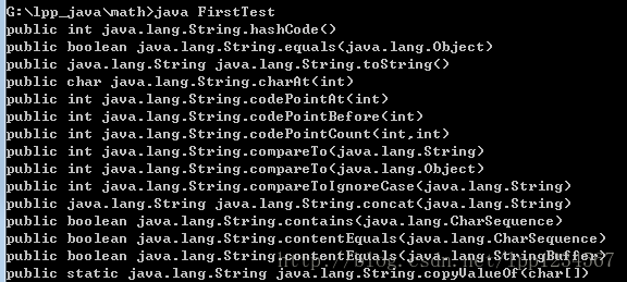 结果将打印出java.lang.String类中所定义的所有public方法,以及所继承的父类Object中的方法,不包括构造方法。部分结果截图如下: