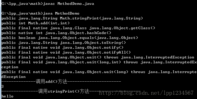 先看一个例子:调用类Math中的add()方法和stringPrint()方法,并给调用的方法传入具体的参数,输出计算结果。