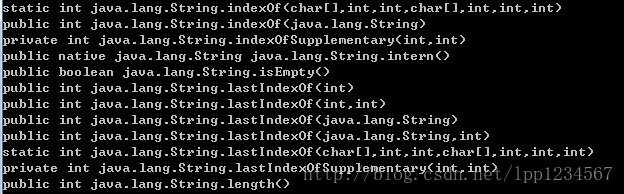 结果将打印出java.lang.String类中所定义的所有方法(包括private方法),以及所继承的父类Object中的方法,不包括构造方法。部分结果截图如下(可以看出包含了private方法):