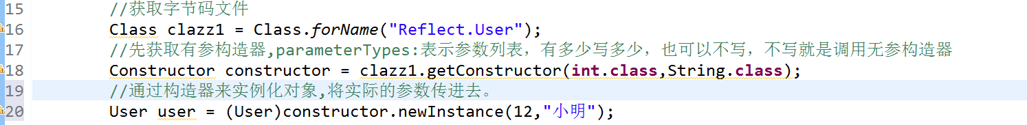 可以调用Class类的 getConstructor(String.class, int.class) 方法获取一个指定的构造函数,然后再调用 Constructor类的 newInstance("张三",20)方法创建对象