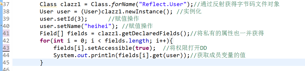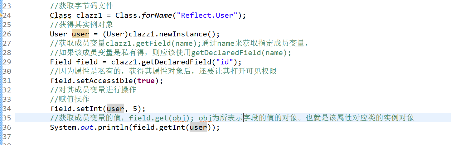 Class.getField(String)方法可以获取类中的指定字段(可见的), 如果是私有的可以用 getDeclaedField("name")方法获取,通过 set(obj, "李四")方法可以设置指定对象上该字段的值, 如果是私有的需要先调用 setAccessible(true) 设置访问权限,用获取的指定的字段调用 get(obj) 可以获取指定对象中该字段的值