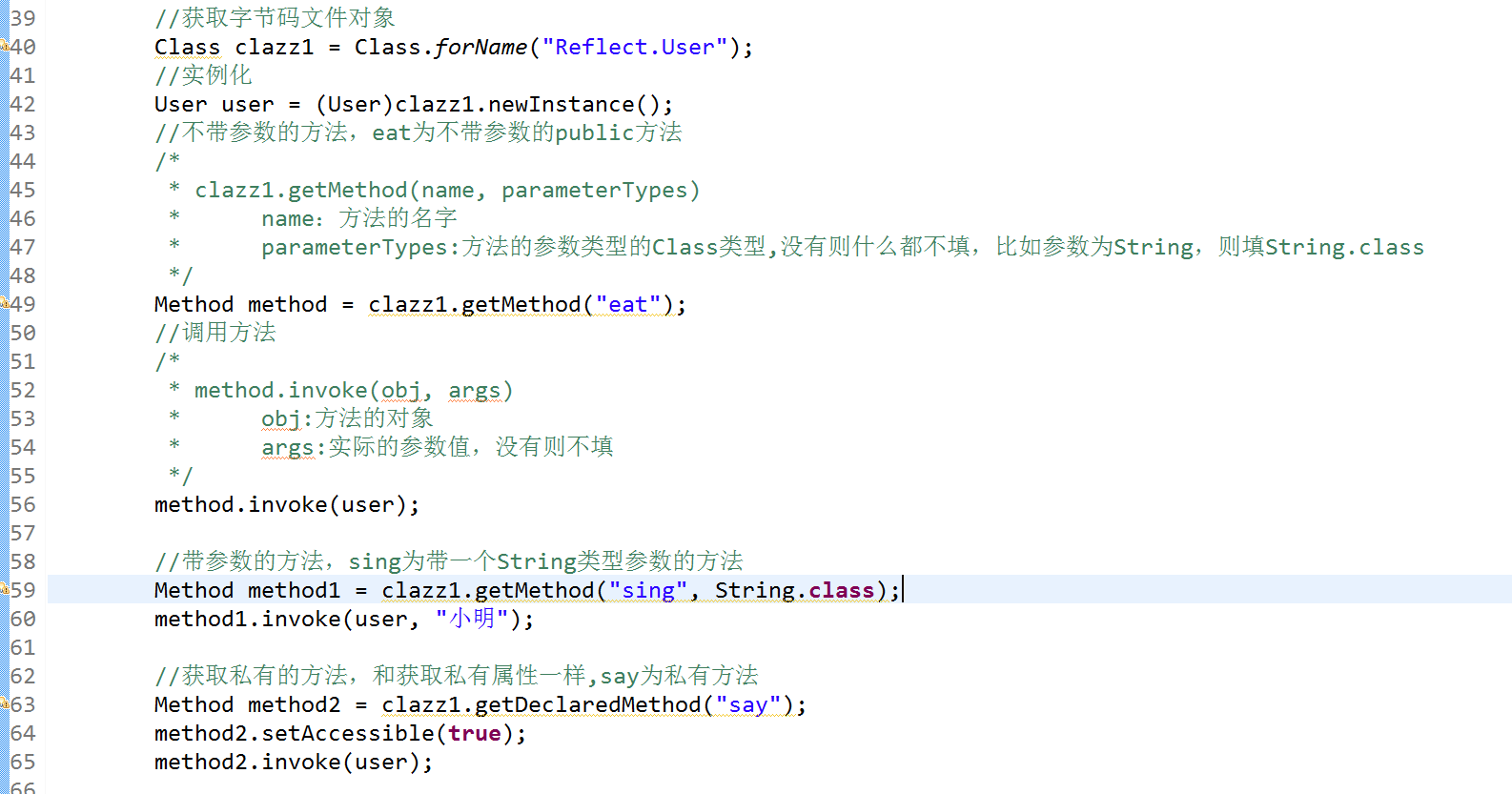- getMethod(parameterTypes) // 获取某个公有的方法的对象,