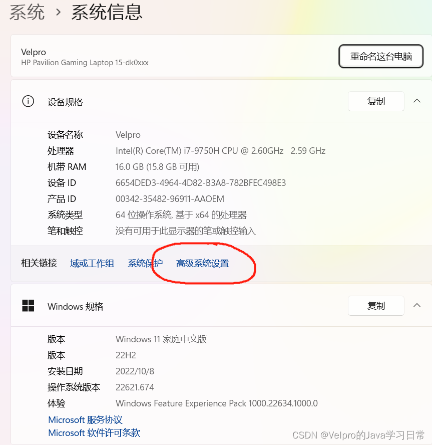 2.点击高级系统设置