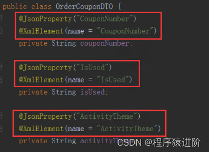 还有就是我们的DTO类里也有很多注解,这些注解可能是拷贝接口契约时遗留的, 类似下面: