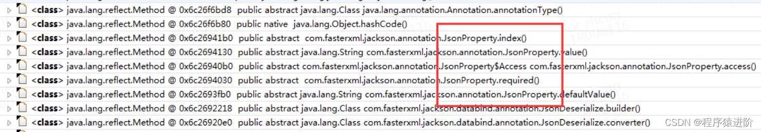 这些@JsonProperty("....."), @XmlElement(".....") 注解业务逻辑里并不会用到, 但是如果用到了序列化或反序列化就会被反射使用,如下