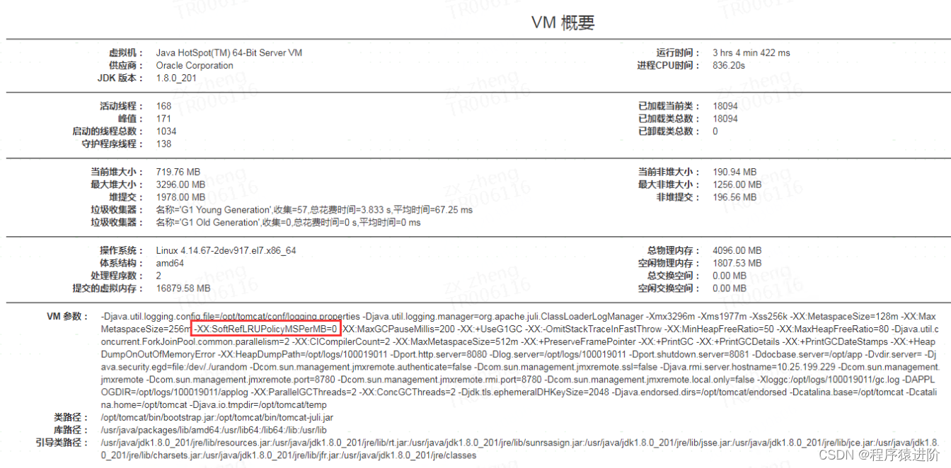【1】目前主要是通过修改JVM的-XX:SoftRefLRUPolicyMSPerMB值来解决metaspace上升问题, 后续会持续观察变化,适当调整参数, 调整的规则可以参考下这篇文章: 【参考答案】:链接 。