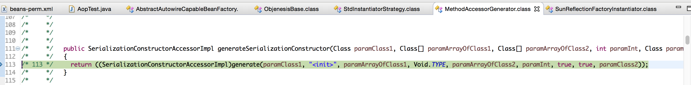 通过上面的截图,我们看到,这个类"sun.reflect.GeneratedSerializationConstructorAccessor10037",是Objenesis帮我们生成对象的过程中加载的。