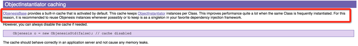 难道用Objenesis实例化类,每次都要加载这个类吗?继续看官方说明,可以看到: