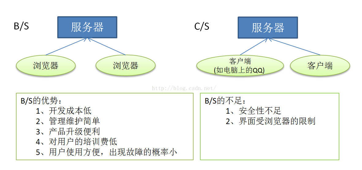 在进行下一阶段之前,简单介绍一些Java EE的两大架构:C/S和B/S。