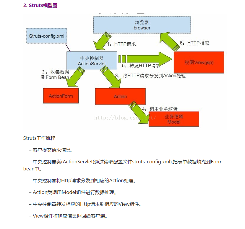 SSH(struts+Spring+hibernate)中Struts的工作原理: