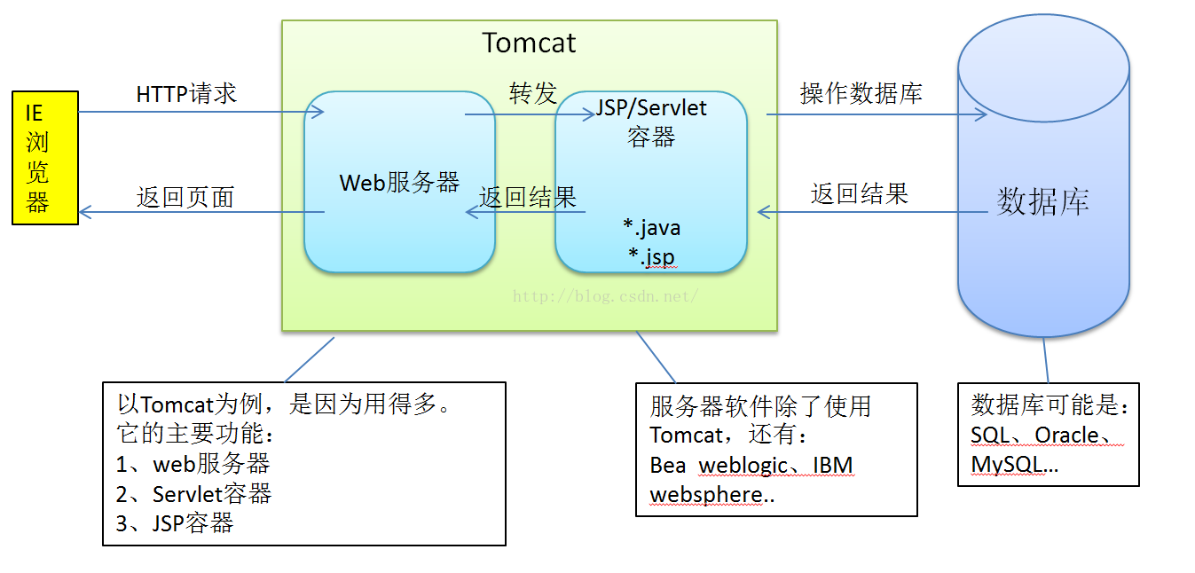 为什么JSP本质上也是Servlet?我们看下访问JSP的过程:如果第一次 访问,.jsp文件被服务器"翻译"成一个对应的java文件(Servlet),然后再编译成.class文件并加载到内存中,如果再访问,那就直接调用内存中的jsp实例。