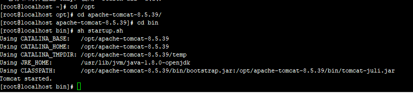 安装,启动tomcat 成功 sh startup.sh 在bin目录下执行启动 tomcat shell 脚本