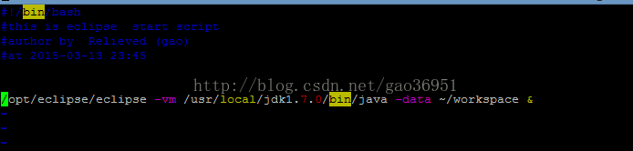 然后编写一个eclipse启动的脚本如下图,因为上面已经把jdk配置的环境变量中了,所以本脚本中就不用再写了