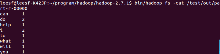 bin/hadoop fs -cat /test/out/part-r-00000