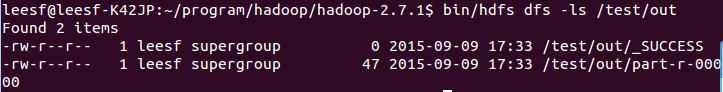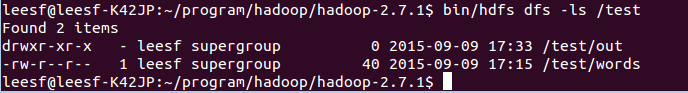 bin/hdfs dfs -ls /test/out,结果截图如下: