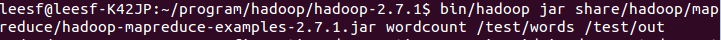 bin/hadoop jar share/hadoop/mapreduce/hadoop-mapreduce-examples-2.7.1.jar wordcount /test/words /test/out