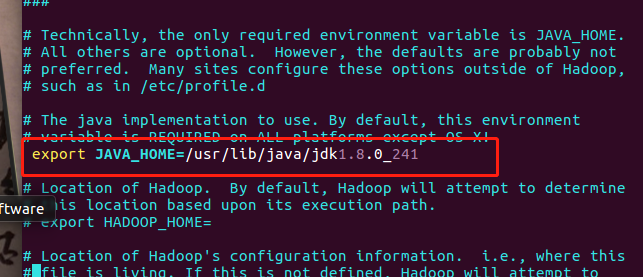 添加:export JAVA_HOME=/usr/lib/java/jdk1.8.0_241 # jdk的安装目录