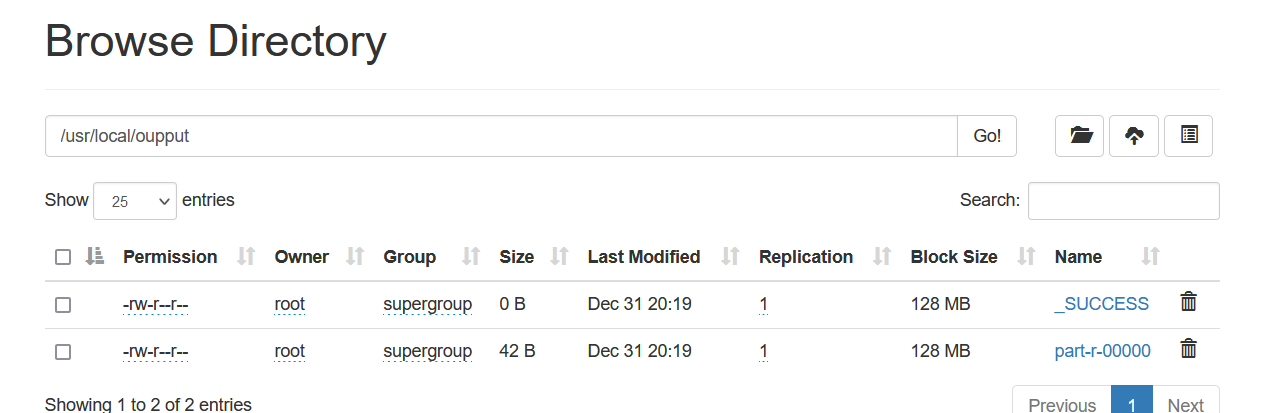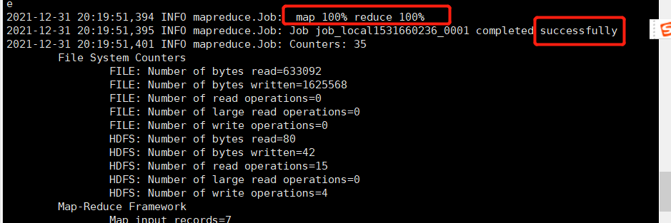 [root@localhost hadoop]# bin/hadoop jar share/hadoop/mapreduce/hadoop-mapreduce-examples-3.1.1.jar wordcount /usr/local/input /usr/local/output