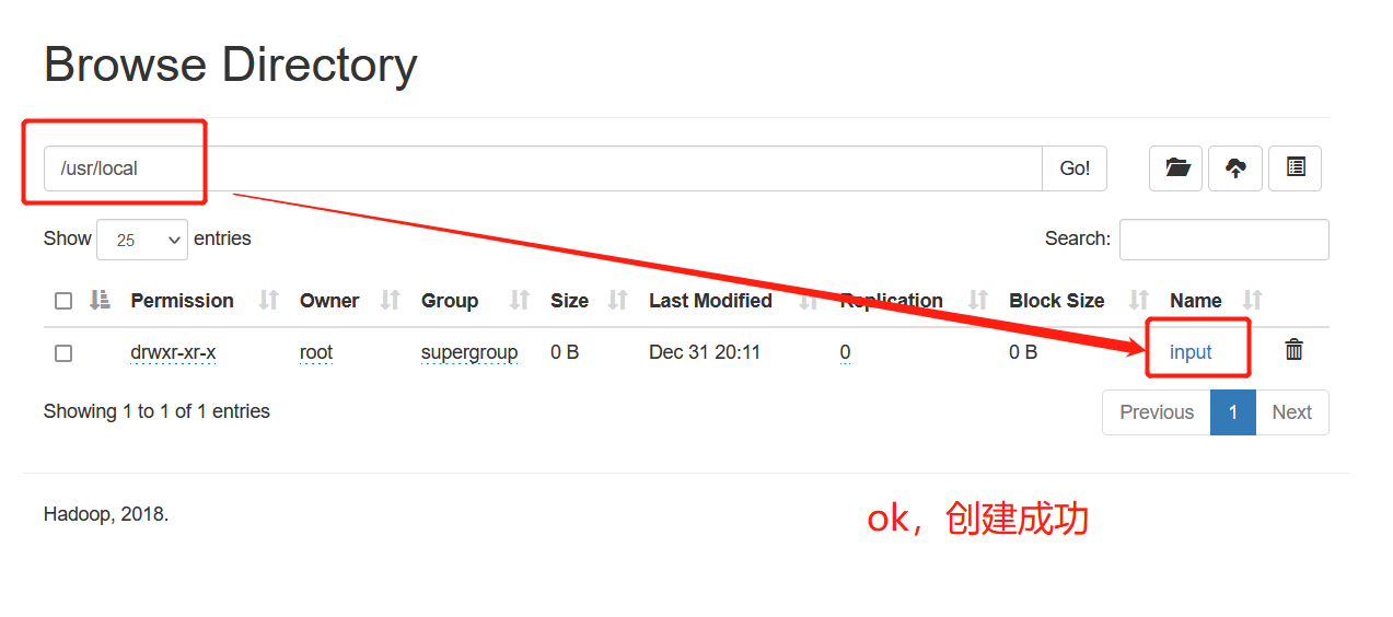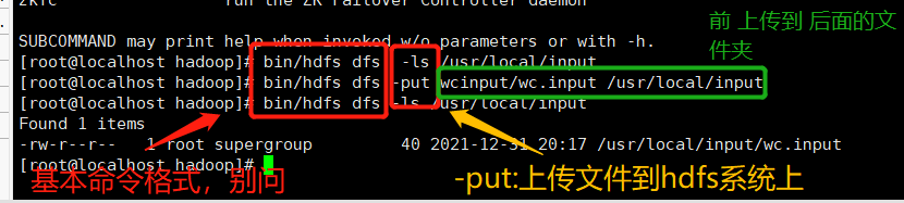 [root@localhost hadoop]# bin/hdfs dfs -mkdir -p /usr/local/input