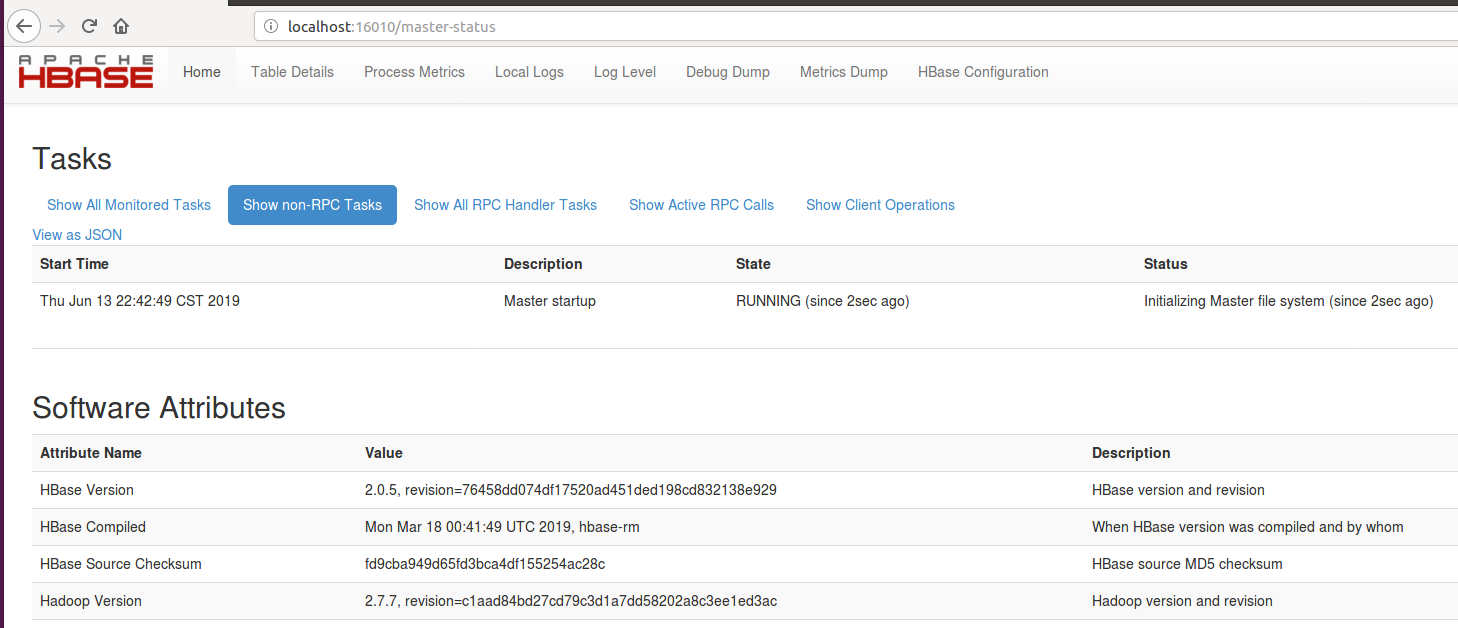 在http://localhost:16010 可以看到hbase的UI,如下图: