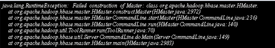 启动hbase,但是没有启动HMaster,在Hbase/logs中的.logs文件可查看日志。
