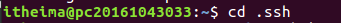4.在进行了初次登陆后,会在当前家目录用户下有一个.ssh文件夹,进入该文件夹下:cd .ssh