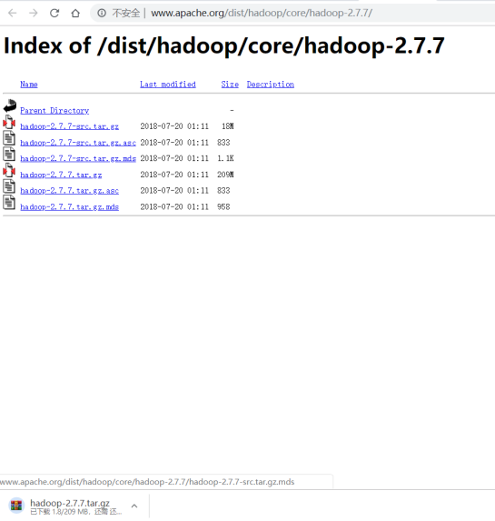 5.下载hadoop2.7.7 解压缩并改名为hadoop目录,放到/usr/local下(注意权限)
