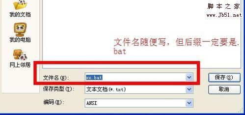 - 然后把文档另存为一个文件名,后缀一定要是.bat的文件