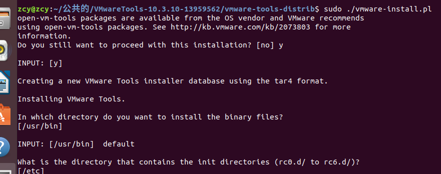 输入命令 sudo ./vmware-install.pl 之后哪里打y,其他回车就行,之后就全屏了。