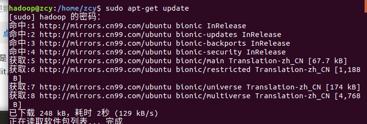 sudo passwd hadoop添加管理员权限