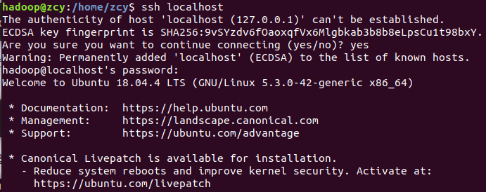 ssh localhost这里打个yes,r然后输入一下密码
