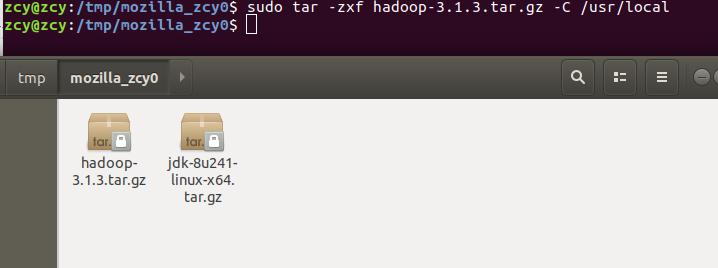 sudo tar -zxf hadoop-3.1.3.tar.gz -C /usr/local