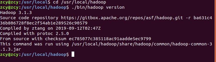 cd /usr/local/hadoop ./bin/hadoop version没问题