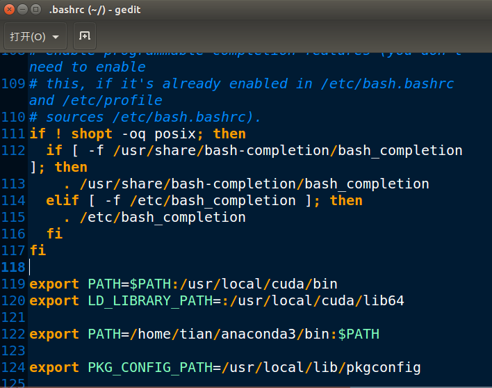 gedit ~/.bashrc