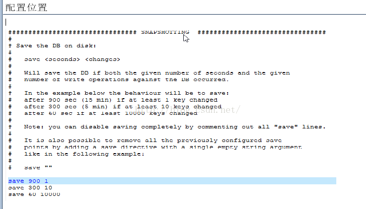 如果想禁用RDB持久化的策略,只要不设置任何save指令,或者给save传入一个空字符串参数也可以