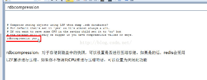 rdbcompression:对于存储到磁盘中的快照,可以设置是否进行压缩存储。如果是的话,redis会采用LZF算法进行压缩。如果你不想消耗CPU来进行压缩的话,可以设置为关闭此功能