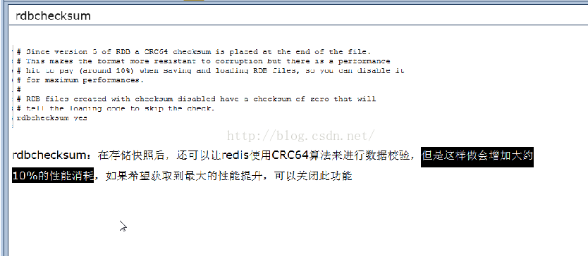rdbchecksum:在存储快照后,还可以让redis使用CRC64算法来进行数据校验,但是这样做会增加大约10%的性能消耗,如果希望获取到最大的性能提升,可以关闭此功能