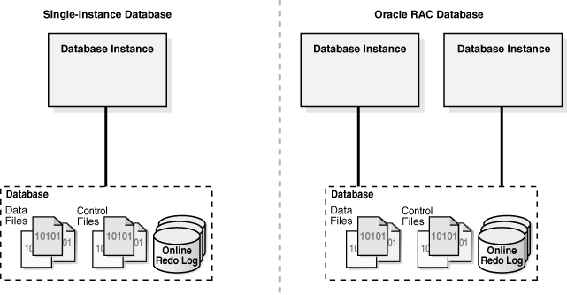每个运行中的数据库至少与一个数据库实例关联。因为实例存在于内存,数据库存放在磁盘上,实例或数据库都可以单独存在。