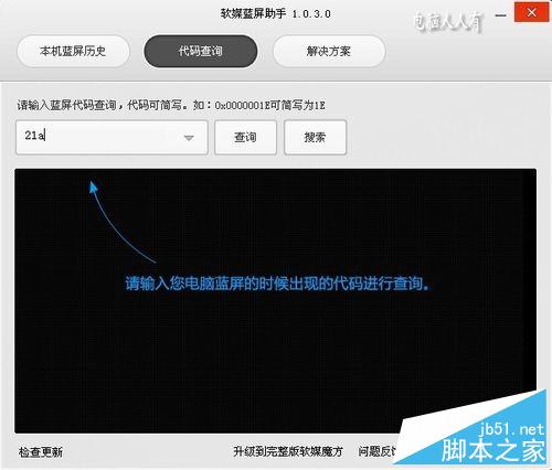 2、此时,可以使用蓝屏助手工具查询一下(输入简码21a→查询)这个停机码的故障缘由。