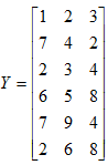 >> Y = [1 2 3; 7 4 2; 2 3 4; 6 5 8; 7 9 4; 2 6 8];