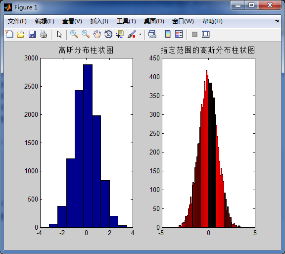 >> title('指定范围的高斯分布柱状图')