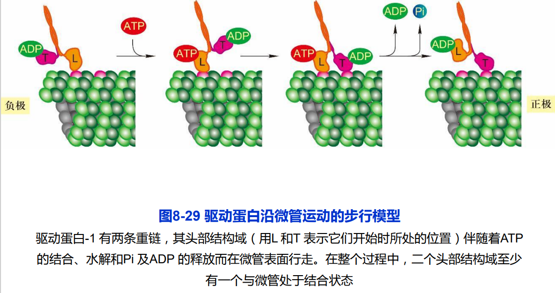 - 驱动蛋白的运动主要涉及发生在两个马达结构域上ATP的结合、水解和ADP的释放以及与自身构象变化相偶联等机械化学循环过程。