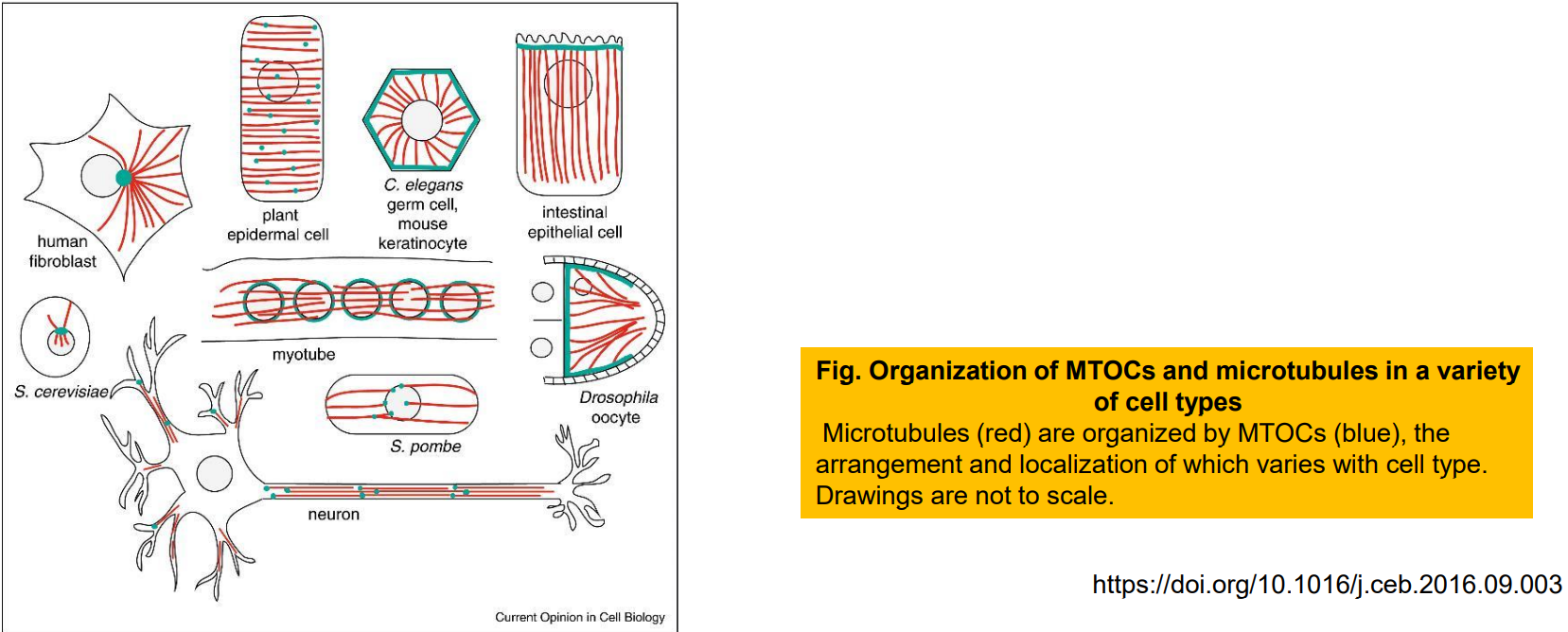 - 其他MTOC:高尔基体的反面膜囊区域和上皮细胞的顶端面等;