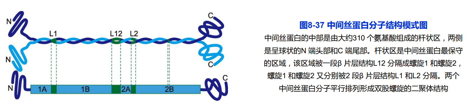 - 不同种类的中间丝蛋白有非常相似的二级结构;