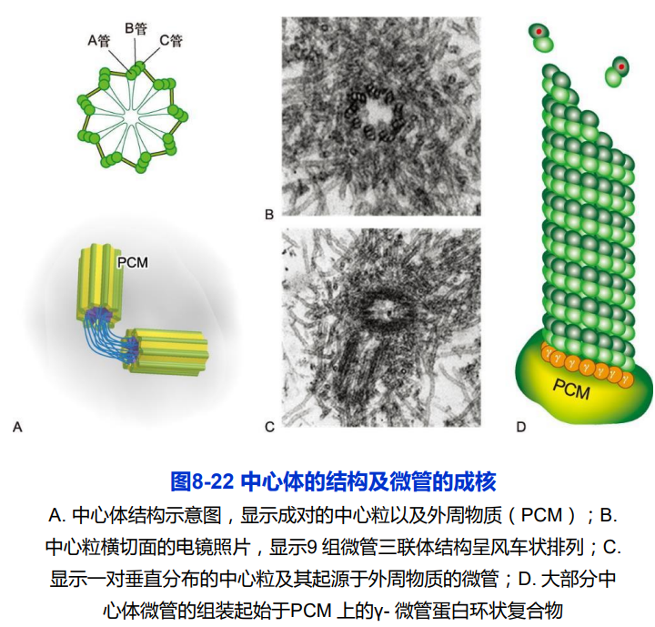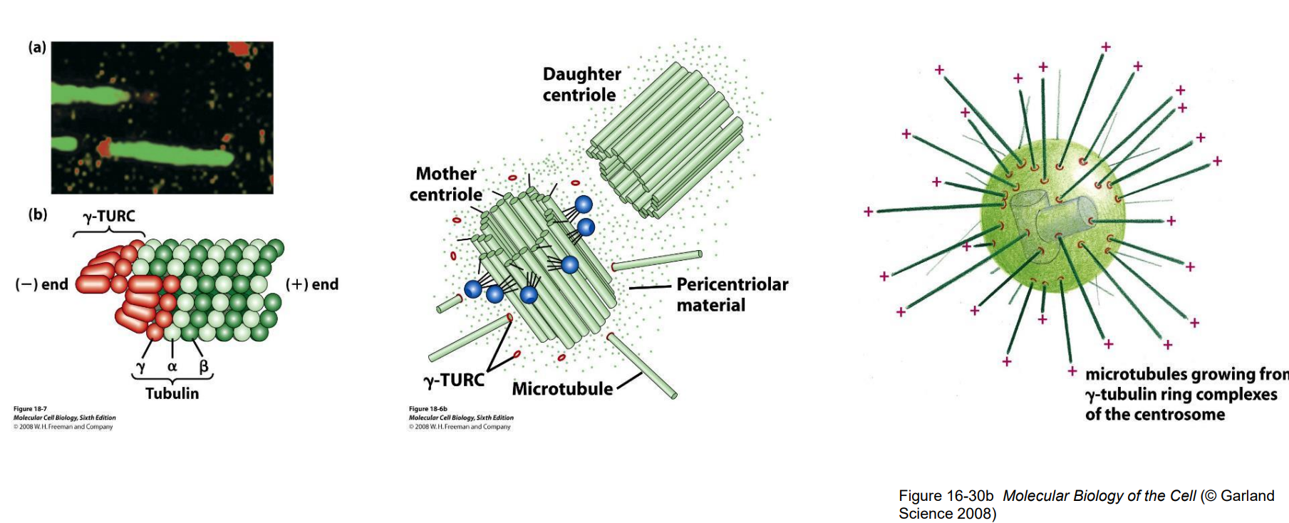 - γ-微管蛋白在中心体的周质物质中形成的环状结构可诱导微管的成核和组装。